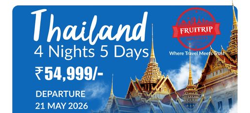 Explore the vibrant charm of Thailand with our specially curated 4 Night 5 Day Fixed Departure Tour in May 2026. Designed for comfort, convenience, and complete enjoyment, this package covers Bangkok and Pattaya with premium inclusions, guided sightseeing, and all essential services taken care of by Fruitrip Holidays.